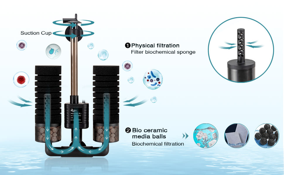 - Accessoires complets : livré avec 4 éponges, un paquet de billes filtrantes en céramique et 2 ventouses. Le filtre complet offre un environnement confortable et propre pour les petits poissons et les crevettes. L’éponge de rechange est placée dans la boîte filtrante, il suffit de retirer l’éponge du filtre pour la nettoyer ou la remplacer.