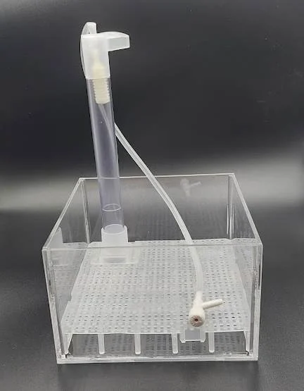 Le kit UGF Shrimps Affair est une boîte de 15 x 15 x 9,5 cm (L x l x H), entièrement fabriquée en acrylique résistant. Grâce au tube de montée réglable inclus, la hauteur totale est comprise entre 23,5 et 35 cm. Les quatre coins de l’ensemble UGF sont incrustés de coins en acrylique afin d’empêcher toute saleté de pénétrer dans les bords intérieurs collés.